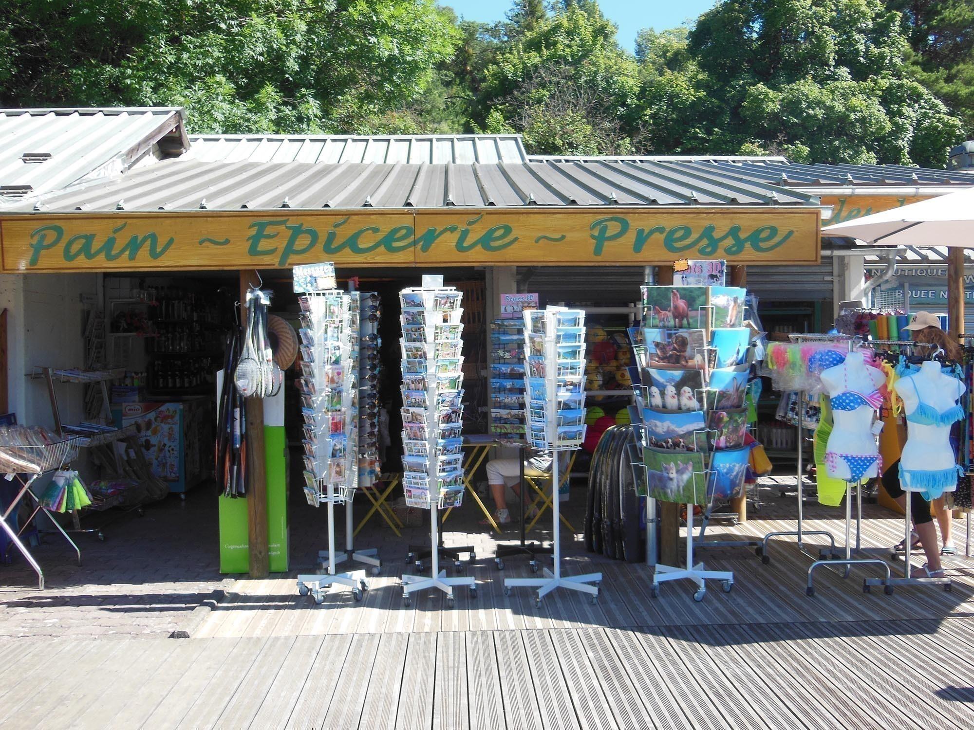 Pain, viennoiseries, point chaud, point frais, glaces, articles et vêtements de plage, souvenirs, presse, cartes IGN, cartes postales et timbres.